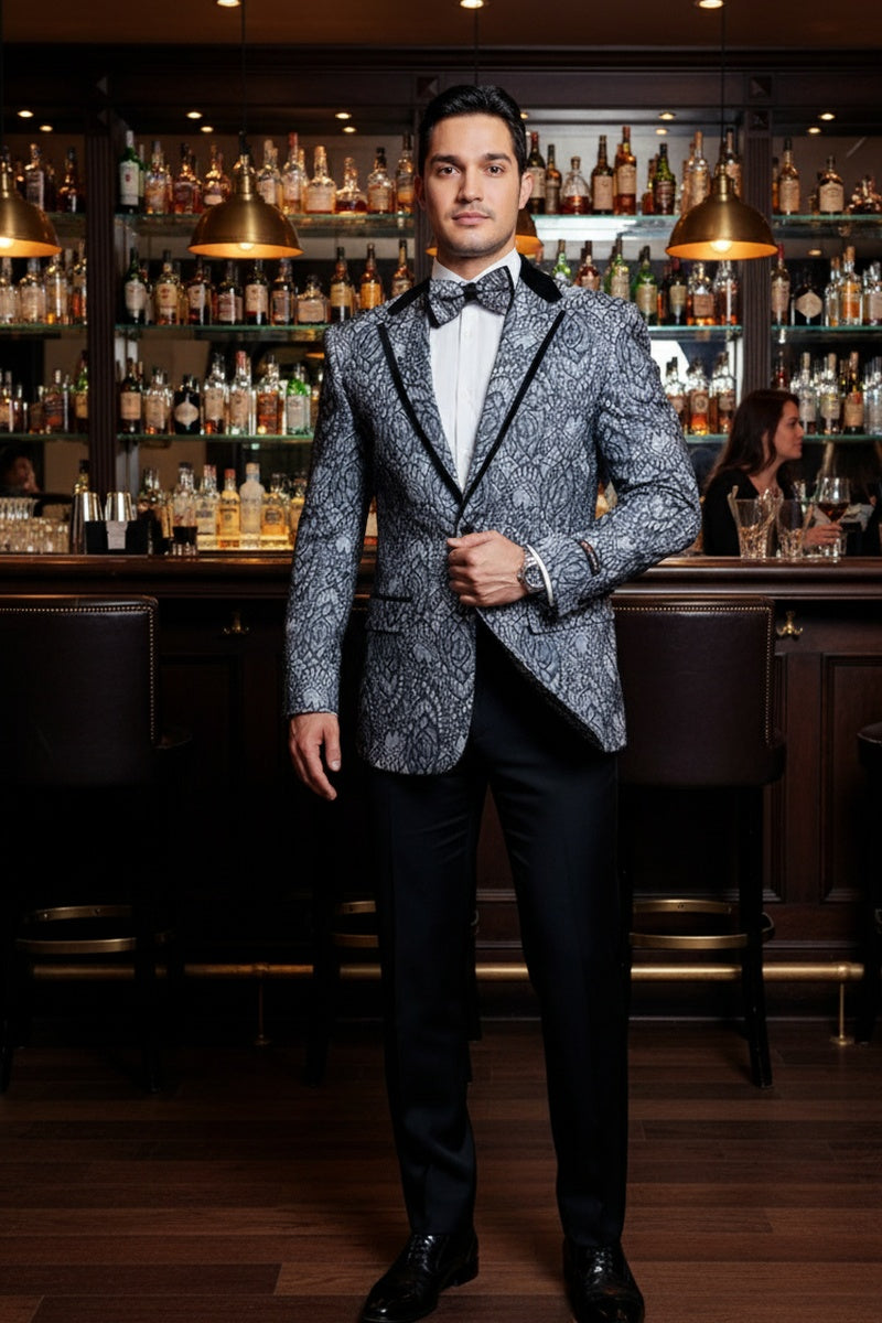 "Atlantis" Black Blazer Jacket, designed by Xander Xiao, is crafted using a beautiful woven fabric in an intricate modern lace pattern.