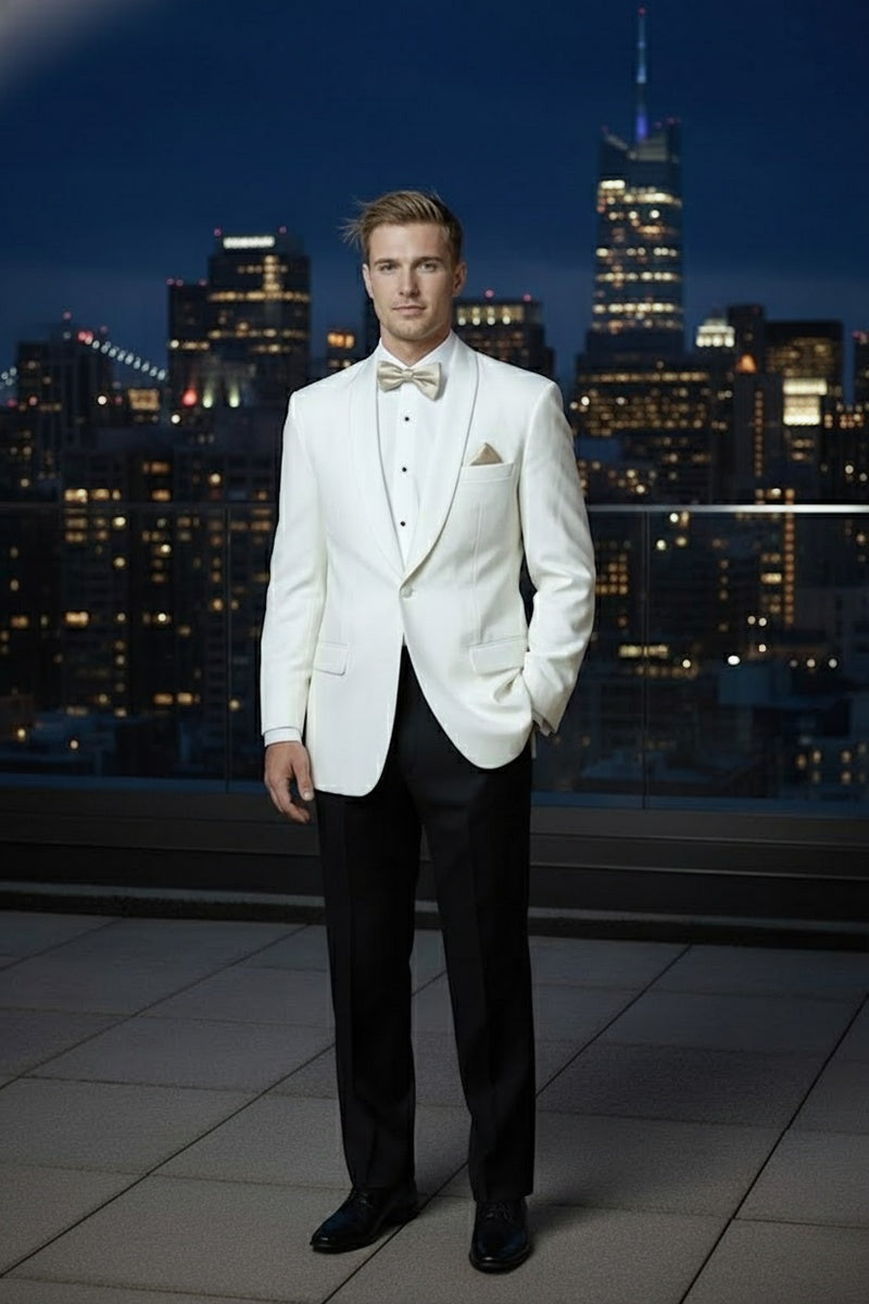 COMPANION PANTS: The pants that were designed to go with this "Brentwood" jacket is the "Washington" Black Tuxedo Pants, featuring an updated 1/8" narrow satin stripe going down the outer side of each leg.
