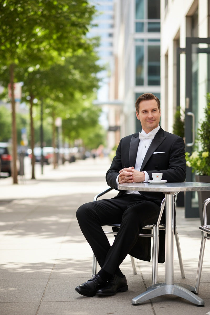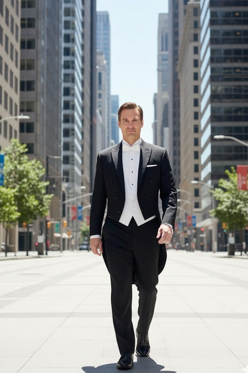 COMPANION PANTS: The pants that were designed to go with this "Edward" jacket is the "Washington" Black Tuxedo Pants, featuring an updated 1/8" narrow satin stripe going down the outer side of each leg.