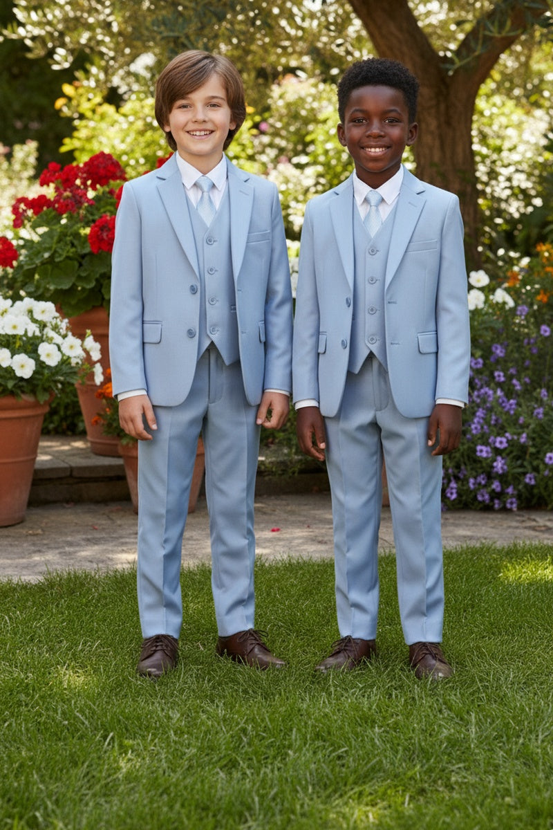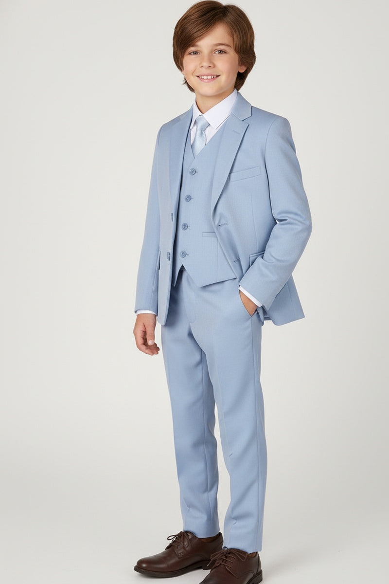 The "Liam" 5-Piece Suit Set, designed by BLACKTIE, is part of our Stretch Collection (our most luxurious collection). Premium jacket, pants, and vest fabric consists of four-way stretch so your little one can still run & play in comfort. Stretch interior lining, a stretch shirt, expandable pants, and adjustable vest & necktie were designed to provide the most comfort possible. The overall craftsmanship of the Stretch Collection is equal to what you find in premium adult version suits. When only the best will do for your precious son or daughter, the Stretch Collection is the way to go!