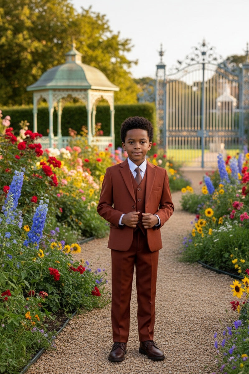 The "Liam" 5-Piece Suit Set, designed by BLACKTIE, is part of our Stretch Collection (our most luxurious collection). Premium jacket, pants, and vest fabric consists of four-way stretch so your little one can still run & play in comfort. Stretch interior lining, a stretch shirt, expandable pants, and adjustable vest & necktie were designed to provide the most comfort possible. The overall craftsmanship of the Stretch Collection is equal to what you find in premium adult version suits. When only the best will do for your precious son or daughter, the Stretch Collection is the way to go!