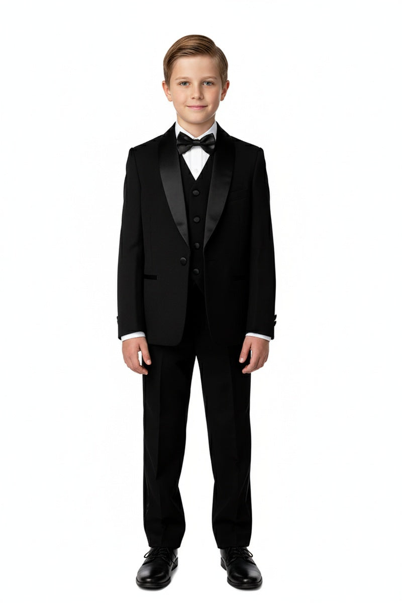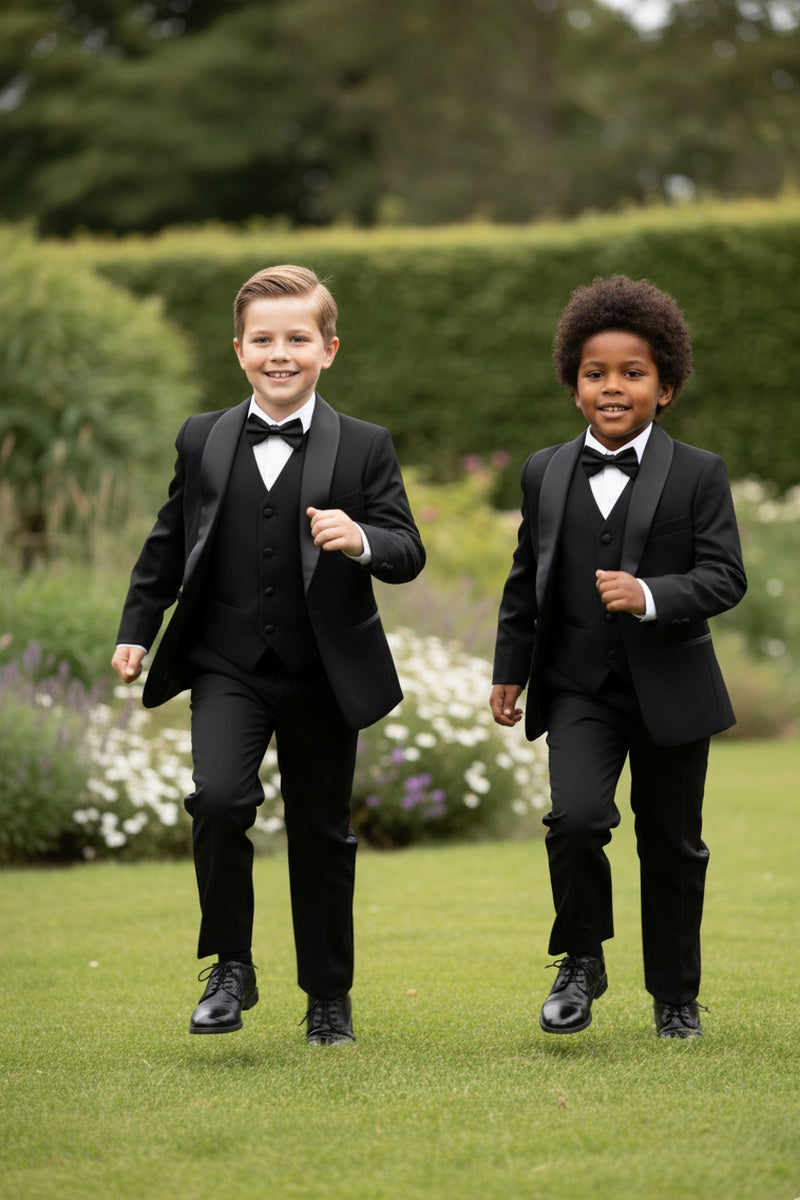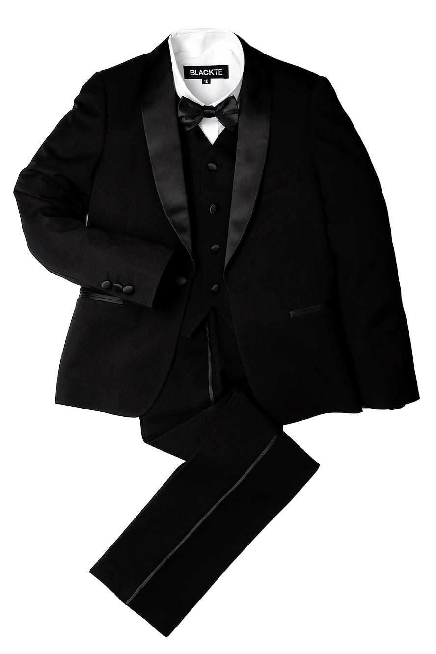 The "London" 5-Piece Tuxedo Set, designed by BLACKTIE, is part of our Stretch Collection (our most luxurious collection). Premium jacket, pants, and vest fabric consists of four-way stretch so your little one can still run & play in comfort. Stretch interior lining, a stretch shirt, expandable pants, and adjustable vest & bow tie were designed to provide the most comfort possible. The overall craftsmanship of the Stretch Collection is equal to what you find in premium adult version suits. When only the best will do for your precious son or daughter, the Stretch Collection is the way to go!