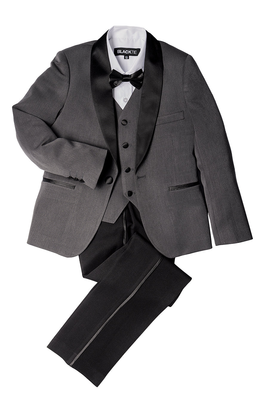 The "London" 5-Piece Tuxedo Set, designed by BLACKTIE, is part of our Stretch Collection (our most luxurious collection). Premium jacket, pants, and vest fabric consists of four-way stretch so your little one can still run & play in comfort. Stretch interior lining, a stretch shirt, expandable pants, and adjustable vest & bow tie were designed to provide the most comfort possible. The overall craftsmanship of the Stretch Collection is equal to what you find in premium adult version suits. When only the best will do for your precious son or daughter, the Stretch Collection is the way to go!