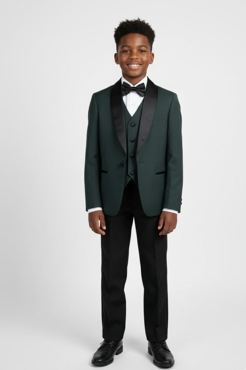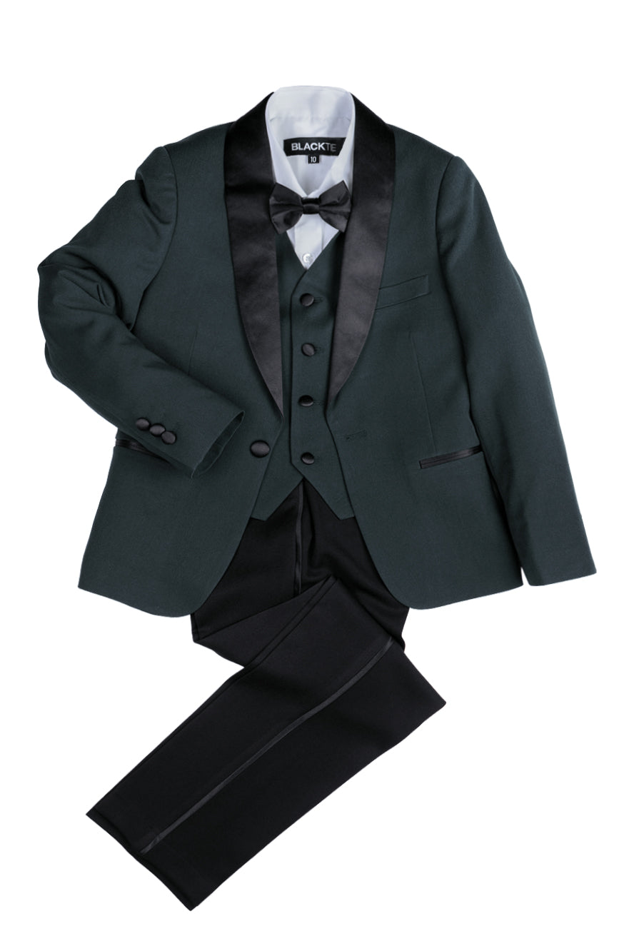 The "London" 5-Piece Tuxedo Set, designed by BLACKTIE, is part of our Stretch Collection (our most luxurious collection). Premium jacket, pants, and vest fabric consists of four-way stretch so your little one can still run & play in comfort. Stretch interior lining, a stretch shirt, expandable pants, and adjustable vest & bow tie were designed to provide the most comfort possible. The overall craftsmanship of the Stretch Collection is equal to what you find in premium adult version suits. When only the best will do for your precious son or daughter, the Stretch Collection is the way to go!