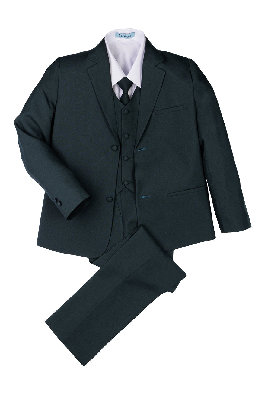 The "Mason" 5-Piece Suit Set, designed by Little Tuxedos, is part of our Essentials Collection. At an attrdraft price point, the Essentials Collection is one of our best sellers! Available in both classic fit and husky fit, the Essentials will accommodate kids of different shapes & sizes. Kids also love to show off the interior blue abstract premium lining! An expandable waist feature, adjustable vest, and adjustable necktie provide additional comfort for your little one.