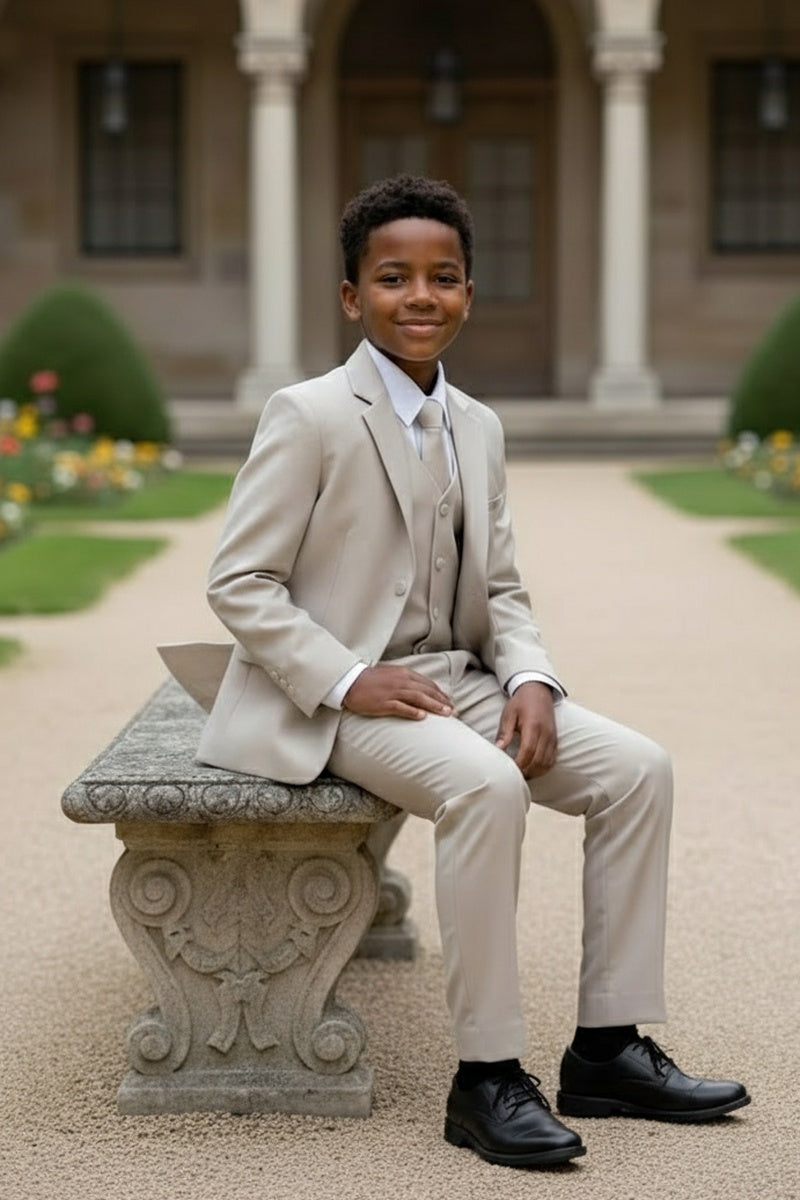 The "Mason" 5-Piece Suit Set, designed by Little Tuxedos, is part of our Essentials Collection. At an attrdraft price point, the Essentials Collection is one of our best sellers! Available in both classic fit and husky fit, the Essentials will accommodate kids of different shapes & sizes. Kids also love to show off the interior blue abstract premium lining! An expandable waist feature, adjustable vest, and adjustable necktie provide additional comfort for your little one.