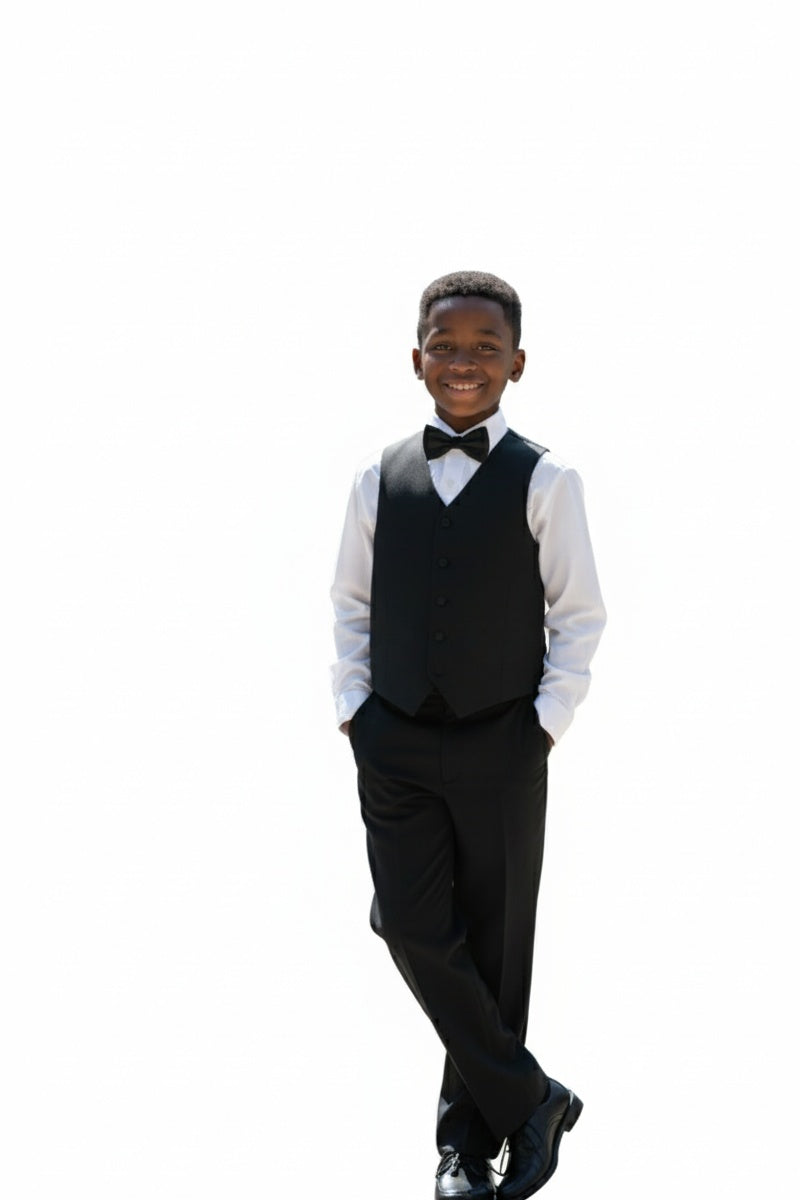 The "Prodigy" 5-Piece Tuxedo Set, designed by Little Tuxedos, is part of our Essentials Collection. At an attrdraft price point, the Essentials Collection is one of our best sellers! Available in both classic fit and husky fit, the Essentials will accommodate kids of different shapes & sizes. Kids also love to show off the interior blue abstract premium lining! An expandable waist feature, adjustable vest, and adjustable necktie provide additional comfort for your little one.