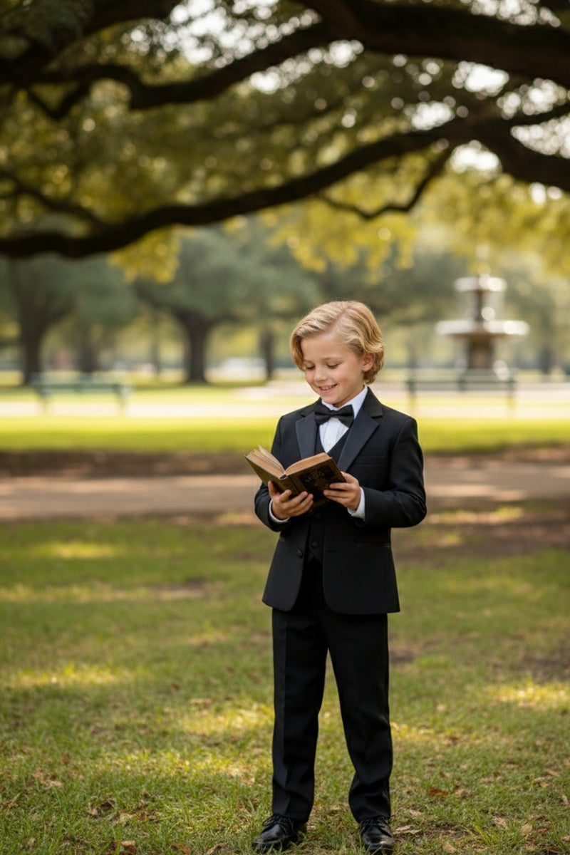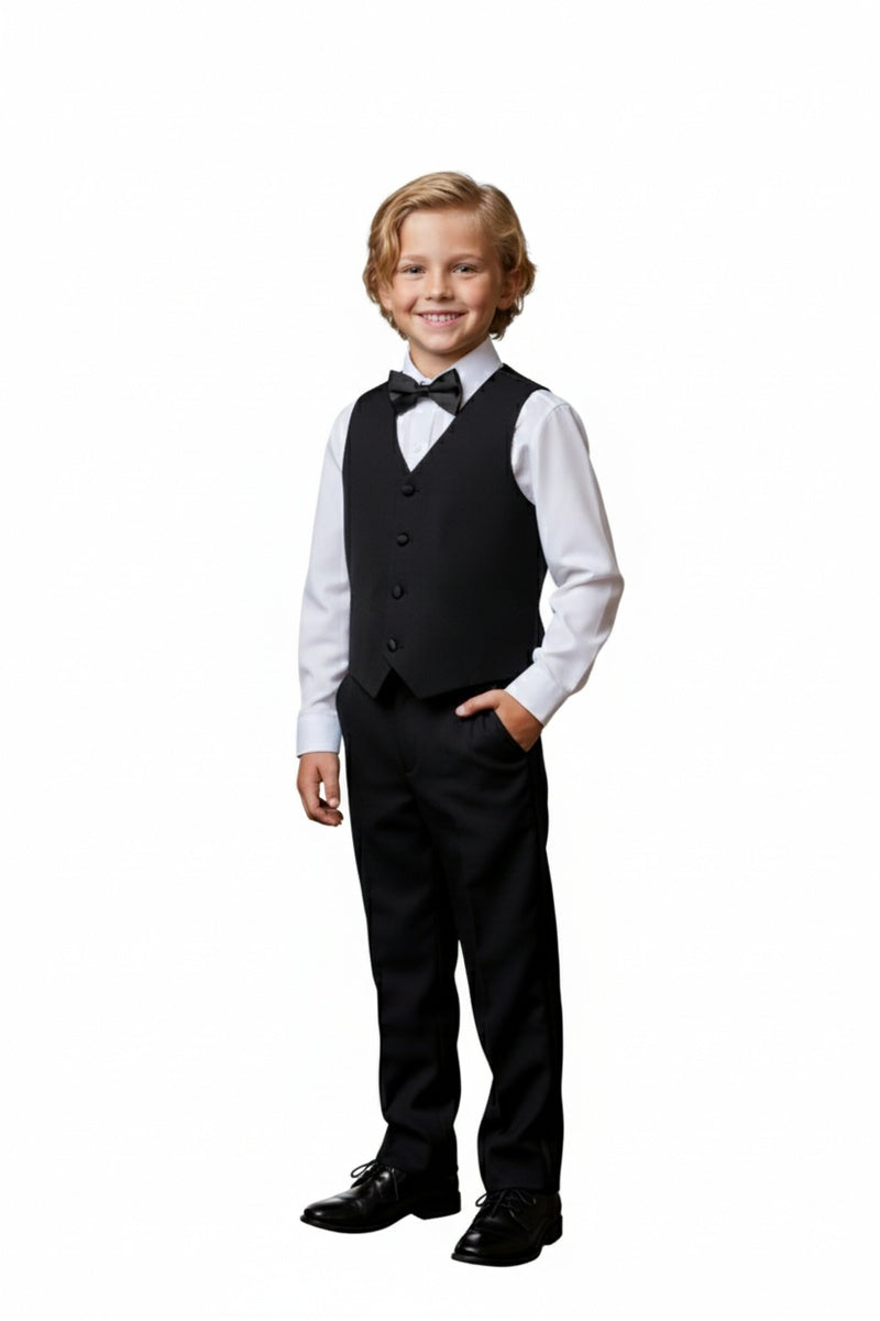 The "Prodigy" 5-Piece Tuxedo Set, designed by Little Tuxedos, is part of our Essentials Collection. At an attrdraft price point, the Essentials Collection is one of our best sellers! Available in both classic fit and husky fit, the Essentials will accommodate kids of different shapes & sizes. Kids also love to show off the interior blue abstract premium lining! An expandable waist feature, adjustable vest, and adjustable necktie provide additional comfort for your little one.